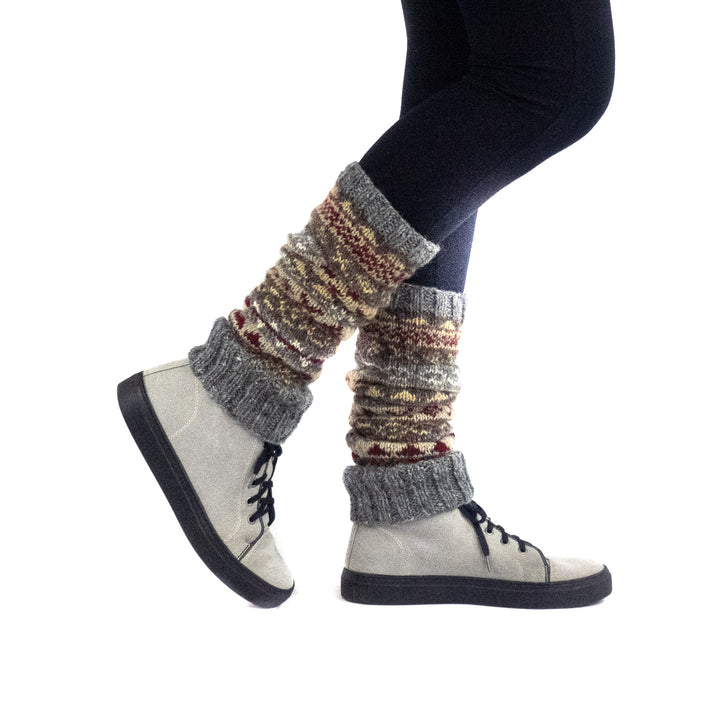 Our ethically made woolen leg warmers are hand knitted in Nepal using pure sheep wool imported from New Zealand. Manufactured by local Tibetan, Nepalese and Newar women with the main mission to empower them.
