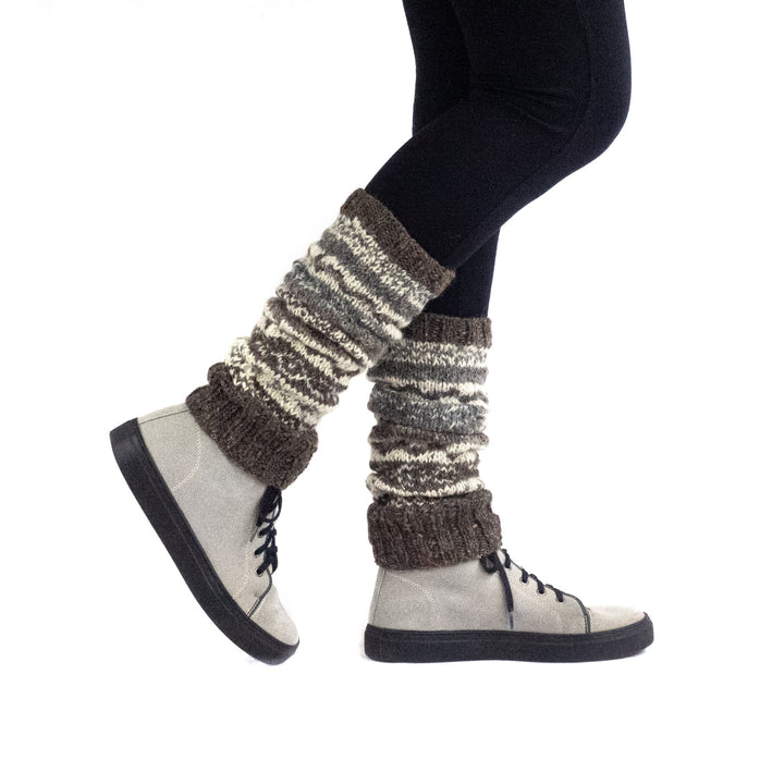 Our ethically made woolen leg warmers are hand knitted in Nepal using pure sheep wool imported from New Zealand. Manufactured by local Tibetan, Nepalese and Newar women with the main mission to empower them.